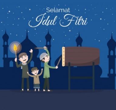 Selamat Hari Raya Idul Fitri Kartun Gambar Lukisan Digital
