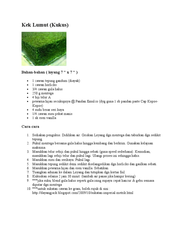 Resepi Kek Lumut Hijau Kukus Daridapur Com