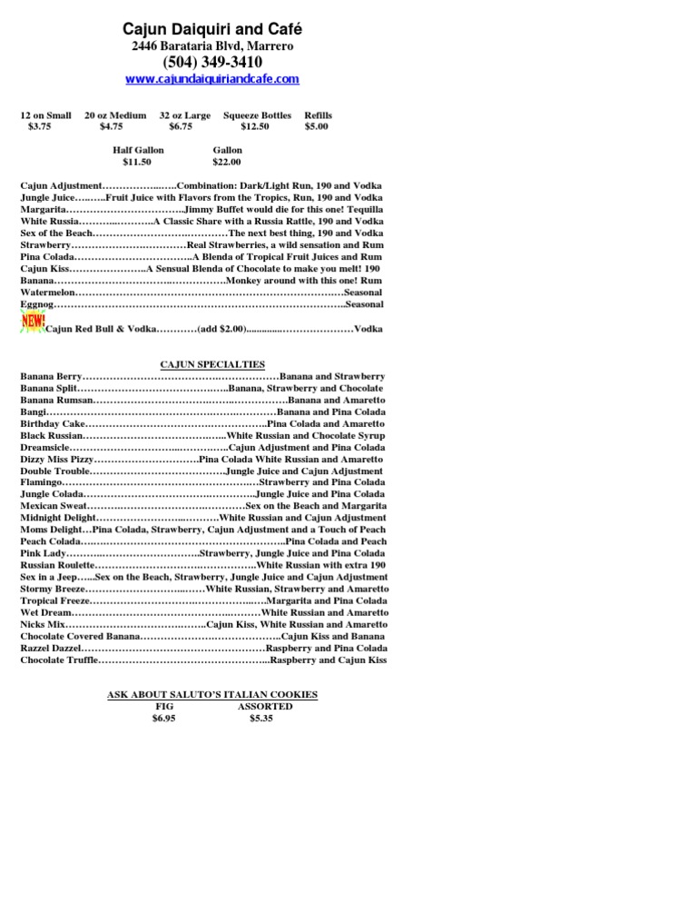 Cajun Daiquiri Menu Drink Alcoholic Drinks