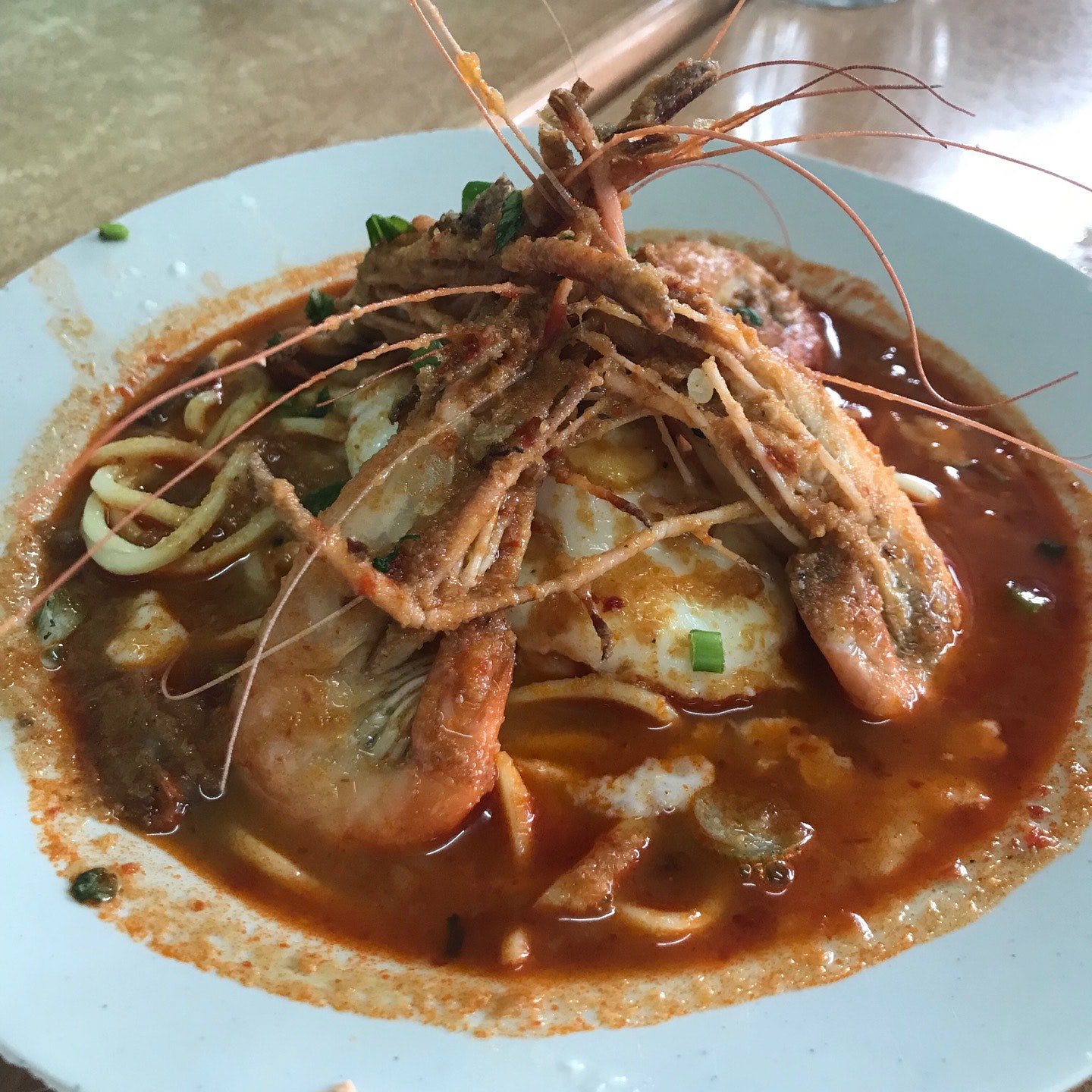 コドモには食べられない辛さ むいたエビだけならok Picture Of Special Mee Bandung Udang Galah Muo Ori Muar Tripadvisor