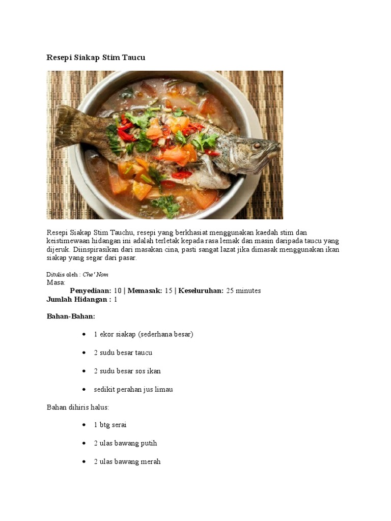 Resepi Siakap Stim Taucu