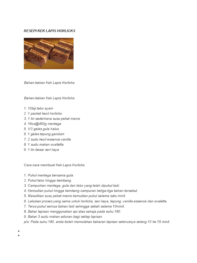 Resepi Kek Lapis Milo Horlick Kukus Recipes Collection Facebook