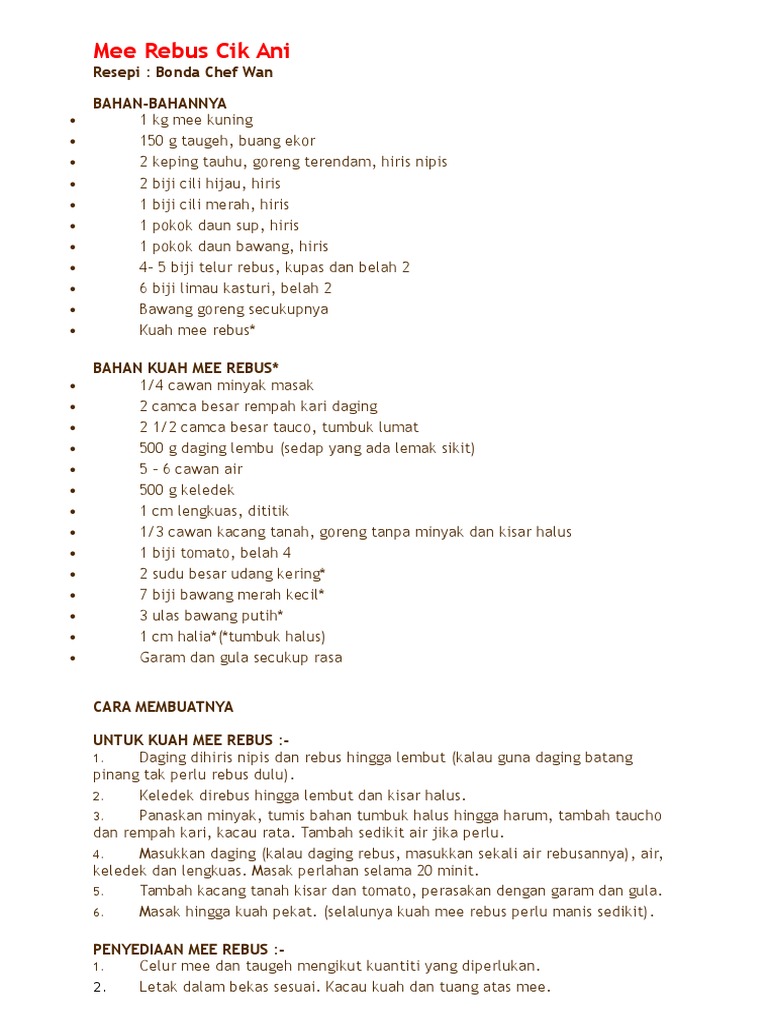 Ibu Resepi Mee Rebus Cik Ani Resepi Bonda Chef Wan Facebook